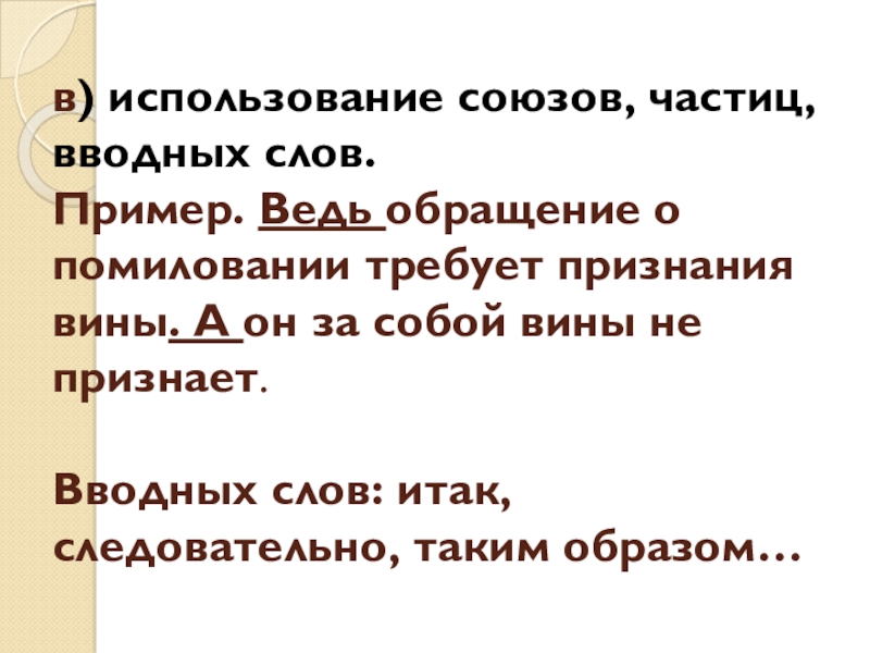 Слайд 30в) использование союзов, частиц, вводных слов.