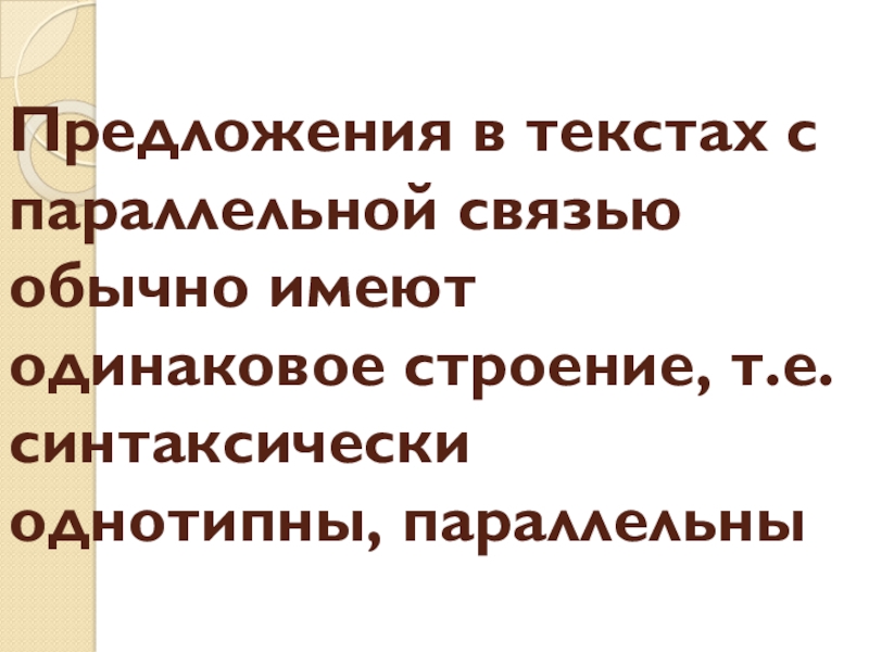 Слайд 20Предложения в текстах с параллельной связью обычно имеют одинаковое строение, т.е.