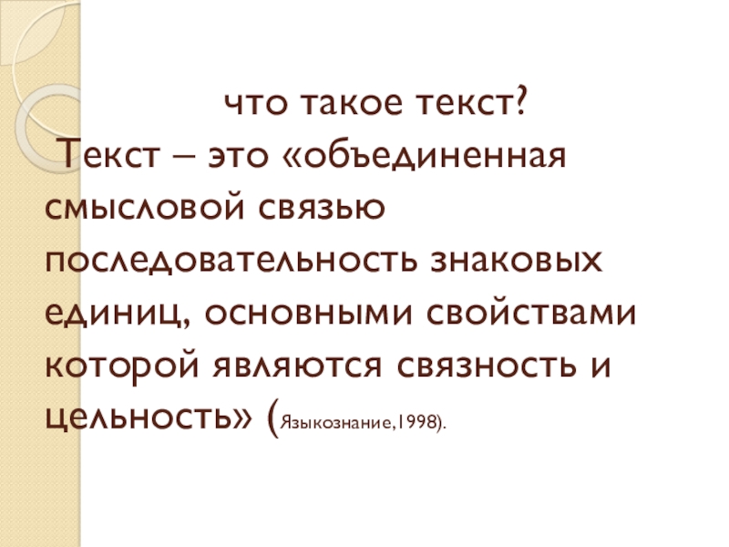 Текст – это «объединенная смысловой связью последовательность знаковых
