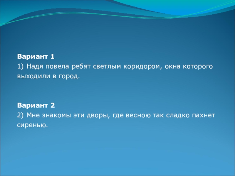 1) Надя повела ребят светлым коридором, окна которого выходили в