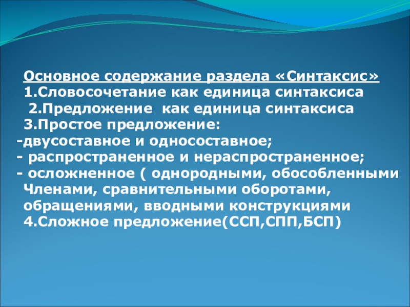 Слайд 5Основное содержание раздела «Синтаксис»