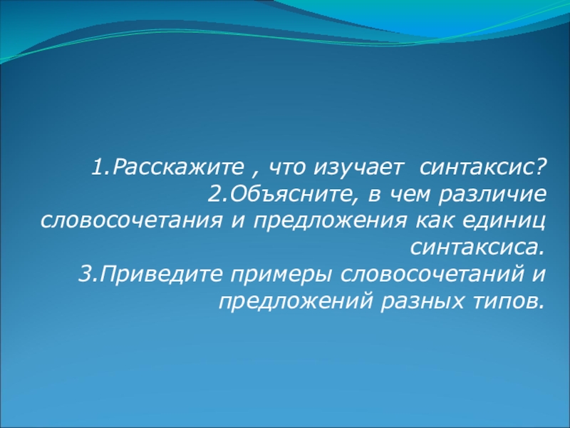 Слайд 41.Расскажите , что изучает синтаксис?