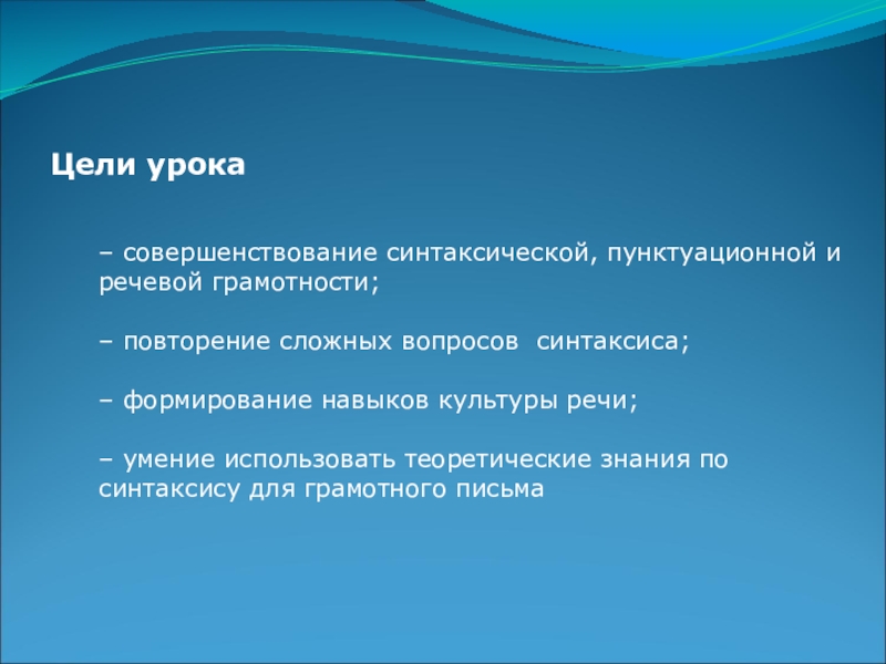 – умение использовать теоретические знания по синтаксису для грамотного письма