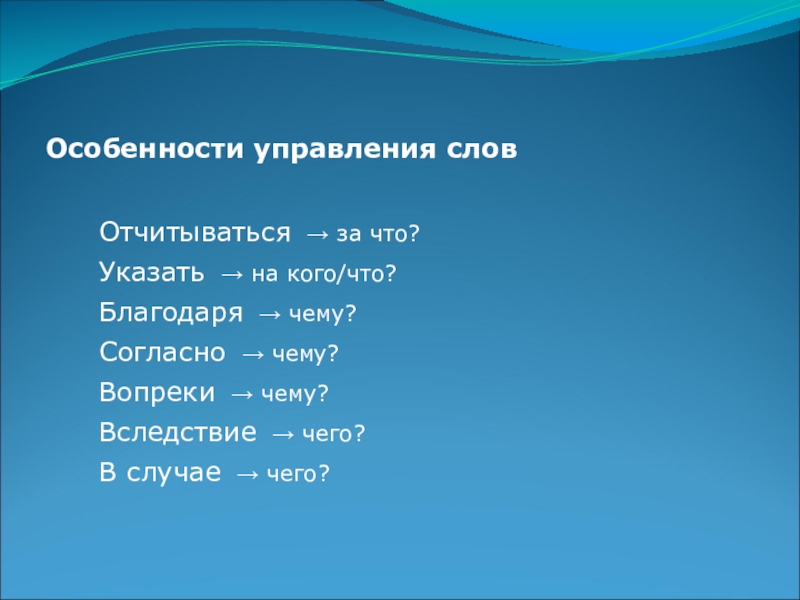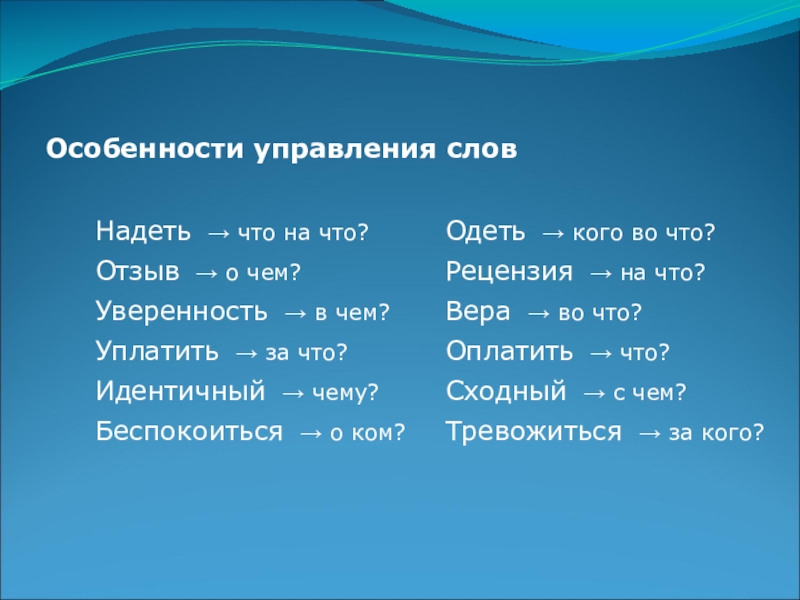 Слайд 12Особенности управления слов