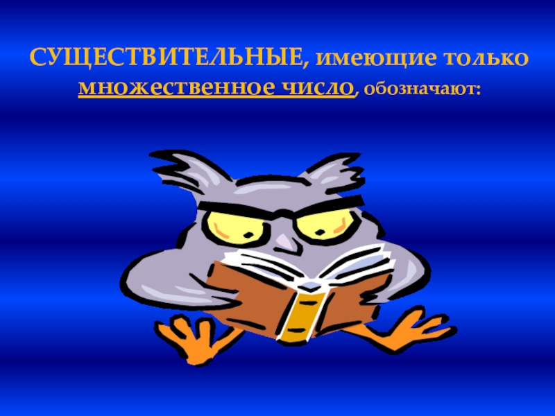 Слайд 5СУЩЕСТВИТЕЛЬНЫЕ, имеющие только множественное число, обозначают: