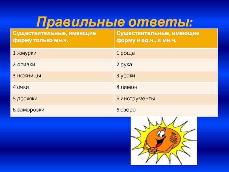 Тема урока: «Имена существительные, имеющие форму только множественного числа»