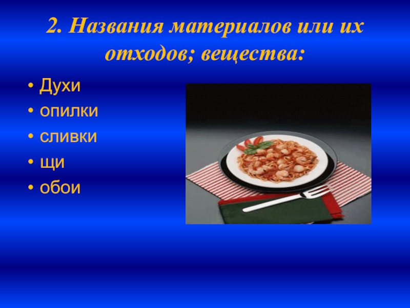 2. Названия материалов или их отходов; вещества:Духиопилкисливкищиобои