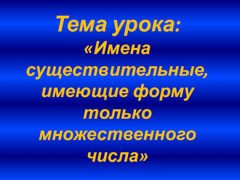 Слайд 3Тема урока: «Имена существительные, имеющие форму только множественного числа»
