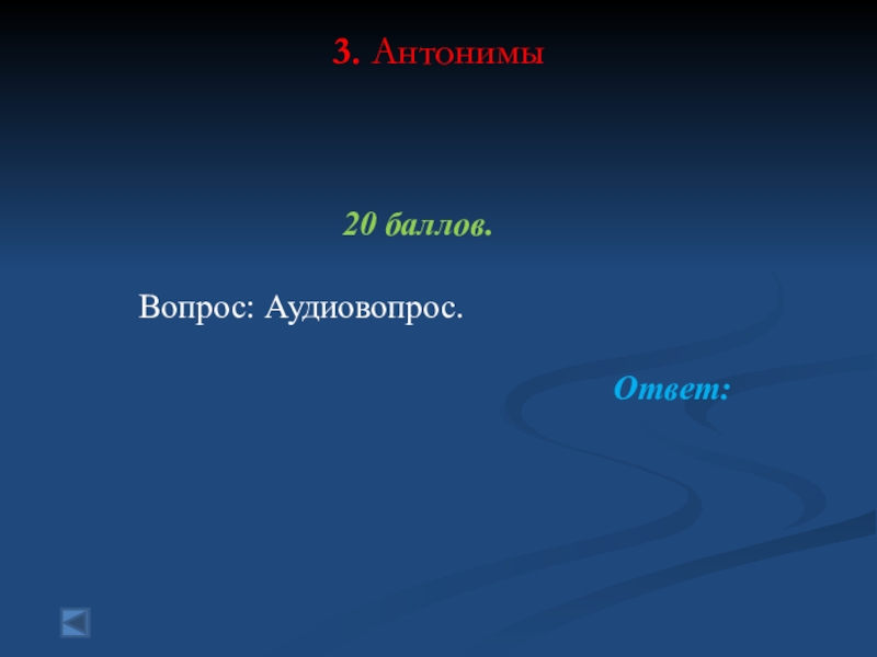 3. Антонимы  20 баллов.   Вопрос: Аудиовопрос. Ответ: