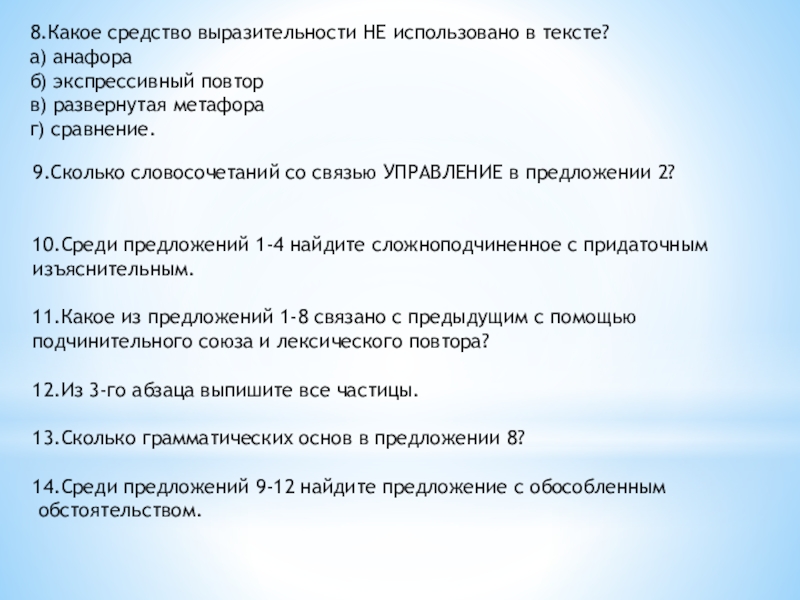 11.Какое из предложений 1-8 связано с предыдущим с помощью