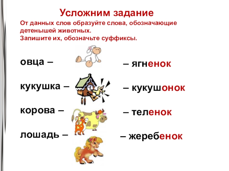От данных слов образуйте слова, обозначающие детенышей животных.
