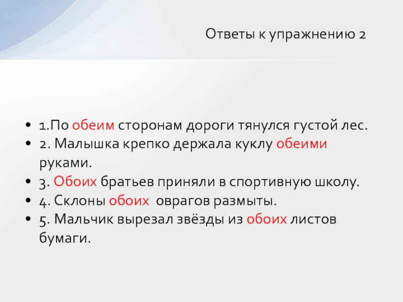 Ответы к упражнению 2