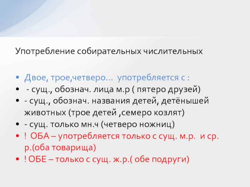 Употребление собирательных числительных