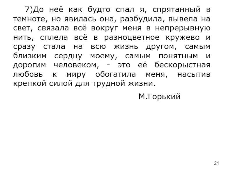 Слайд 21 7)До неё как будто спал я, спрятанный в темноте, но явилась