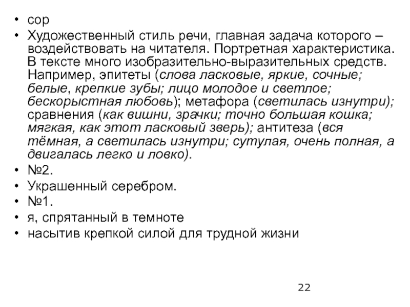 Слайд 20 1)Говорила она, как-то особенно выпевая слова, и они легко укреплялись в