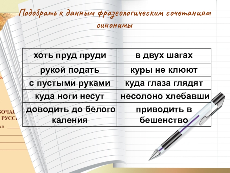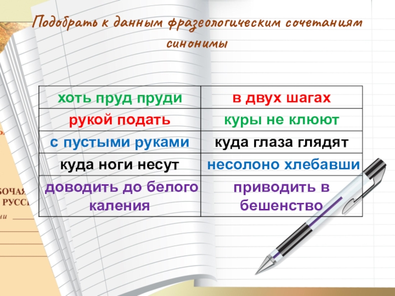Подобрать к данным фразеологическим сочетаниям синонимы
