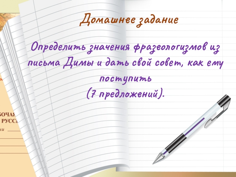 Определить значения фразеологизмов из письма Димы и дать свой совет, как