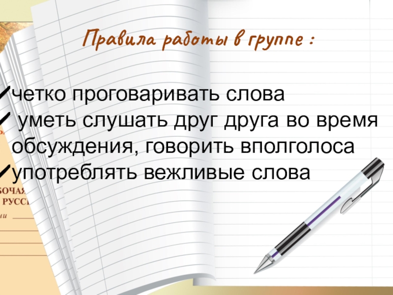 Правила работы в группе :