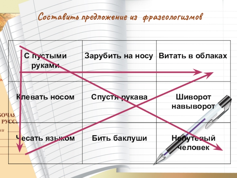 Составить предложение из фразеологизмов