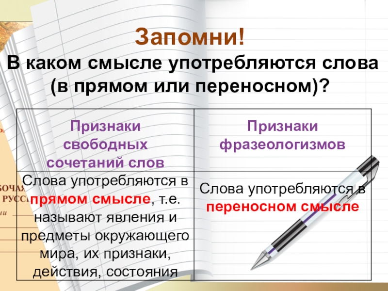 В каком смысле употребляются слова (в прямом или переносном)?