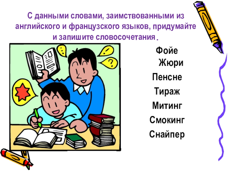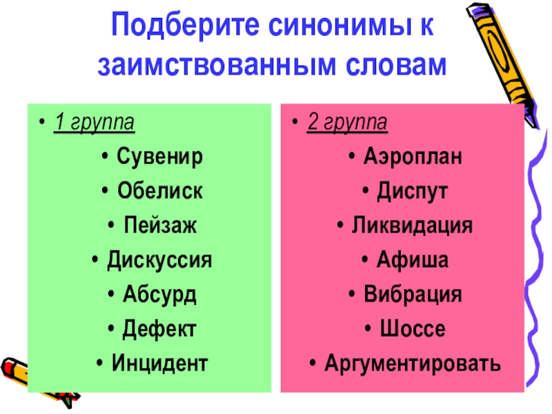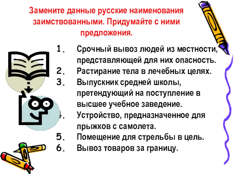 Замените данные русские наименования заимствованными. Придумайте с ними предложения.