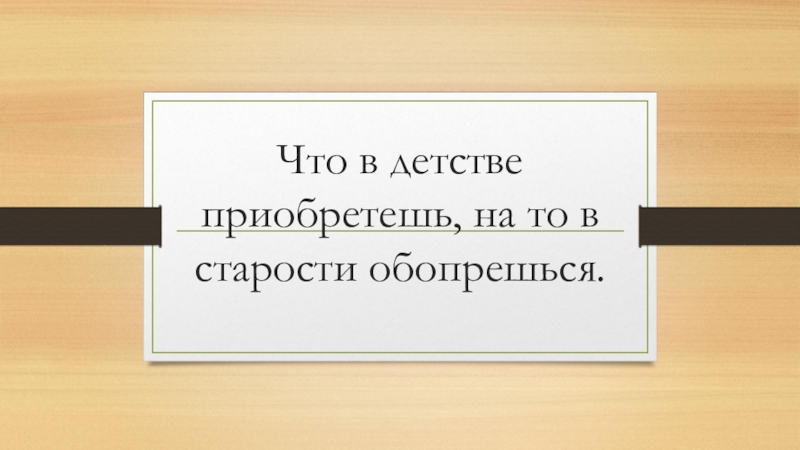 Слайд 1Что в детстве приобретешь, на то в старости обопрешься.
