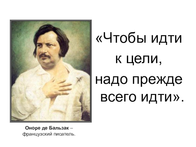 «Чтобы идти к цели,надо прежде всего идти».Оноре де Бальзак – французский писатель.