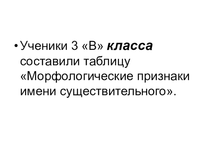 Ученики 3 «В» класса составили таблицу «Морфологические признаки имени существительного».