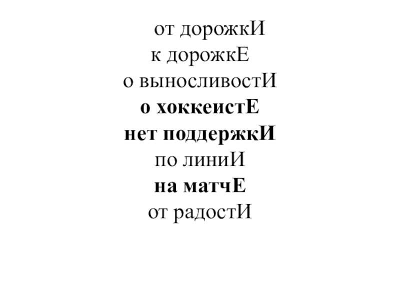 от дорожкИ  к дорожкЕ  о выносливостИ  о хоккеистЕ  нет поддержкИ  по линиИ