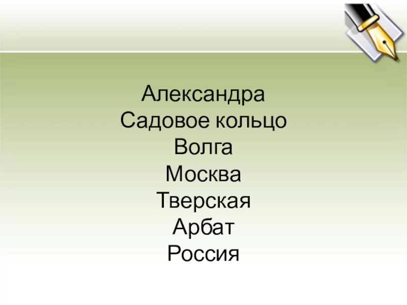Слайд 5 Александра Садовое кольцо Волга Москва Тверская Арбат Россия
