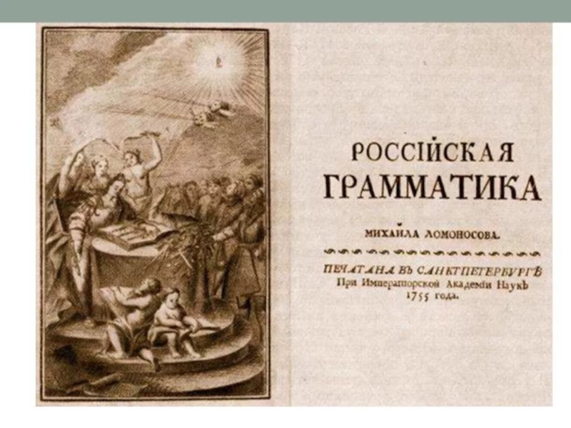 Слайд 4Первую научную грамматику русского языка создал Михаил Ломоносов в 1755 году.