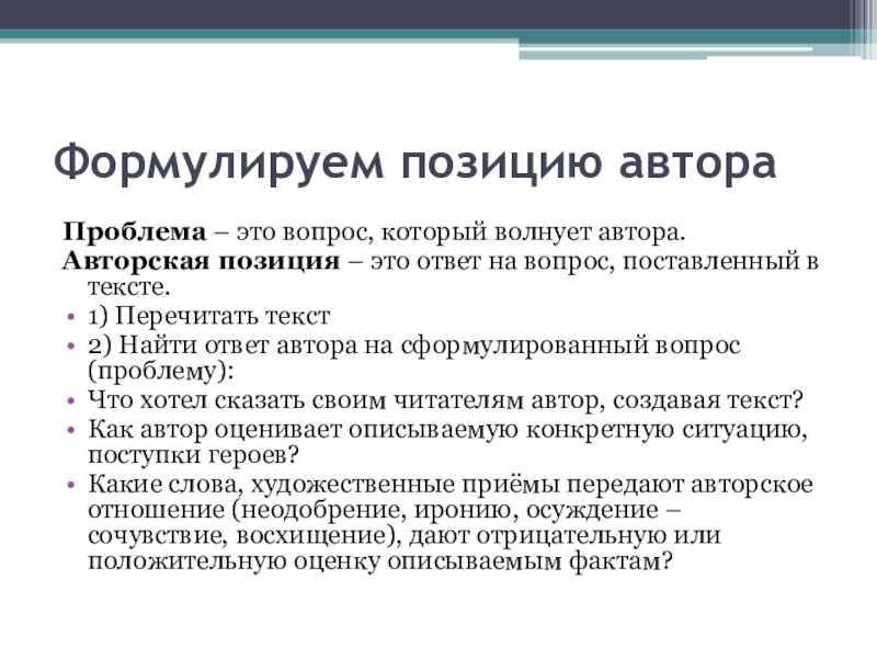 2) Найти ответ автора на сформулированный вопрос (проблему):