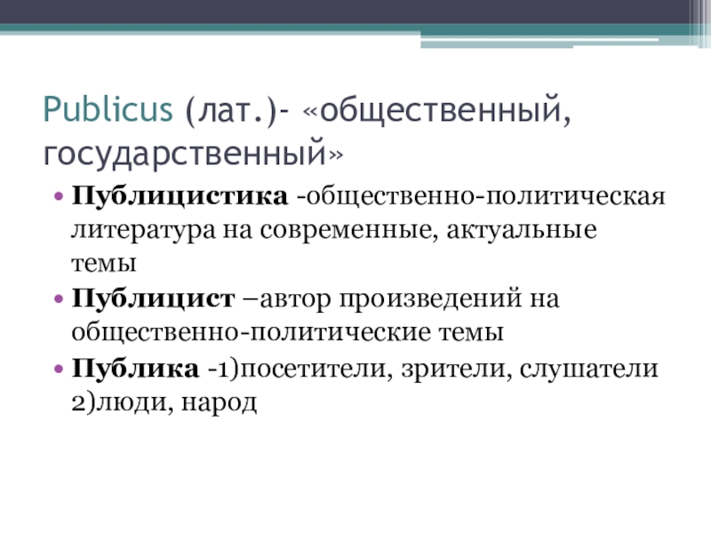 Слайд 4Publicus (лат.)- «общественный, государственный»