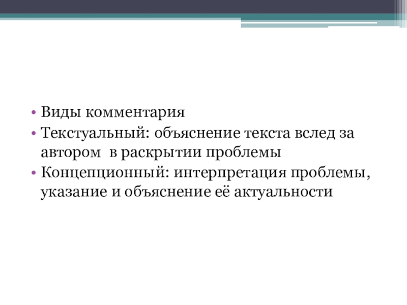 Текстуальный: объяснение текста вслед за автором в раскрытии проблемы