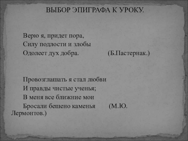 ВЫБОР ЭПИГРАФА К УРОКУ.