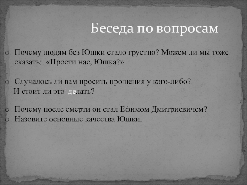 Почему людям без Юшки стало грустно? Можем ли мы тоже сказать: «Прости нас, Юшка?»
