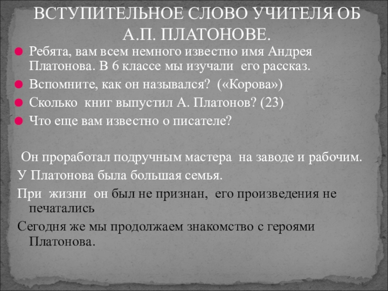 ВСТУПИТЕЛЬНОЕ СЛОВО УЧИТЕЛЯ ОБ