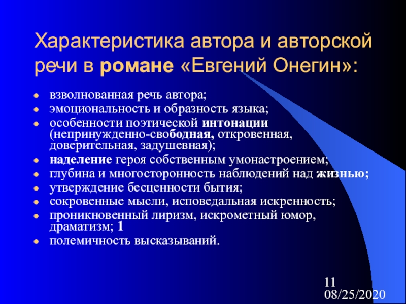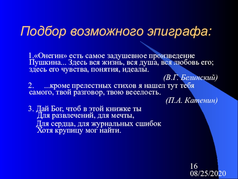 1.«Онегин» есть самое задушевное произведение Пушкина... Здесь