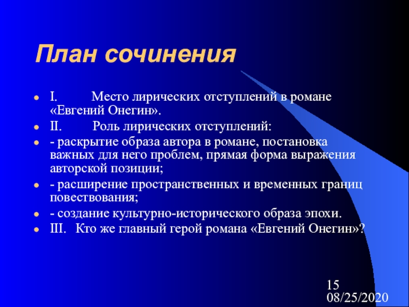 «Лирические отступления в романе «Евгений Онегин». Образ автора».