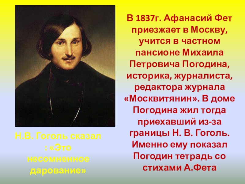 Н.В. Гоголь сказал : «Это несомненное дарование»