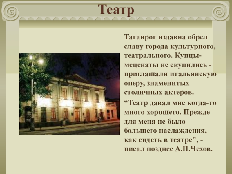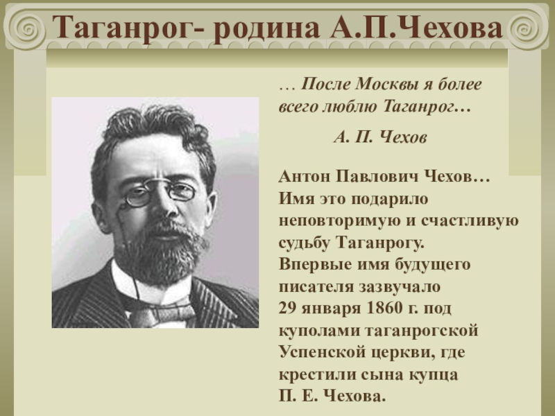 Антон Павлович Чехов… Имя это подарило неповторимую и счастливую судьбу Таганрогу.