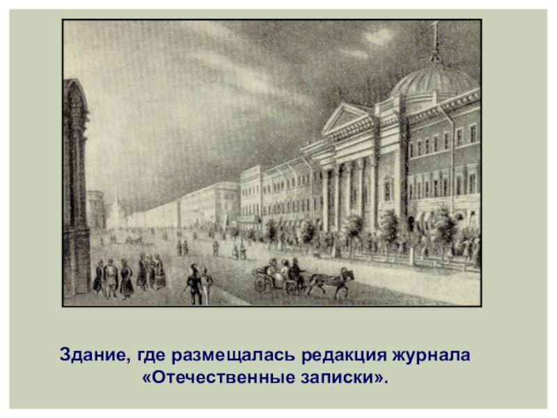 Слайд 21Здание, где размещалась редакция журнала «Отечественные записки».