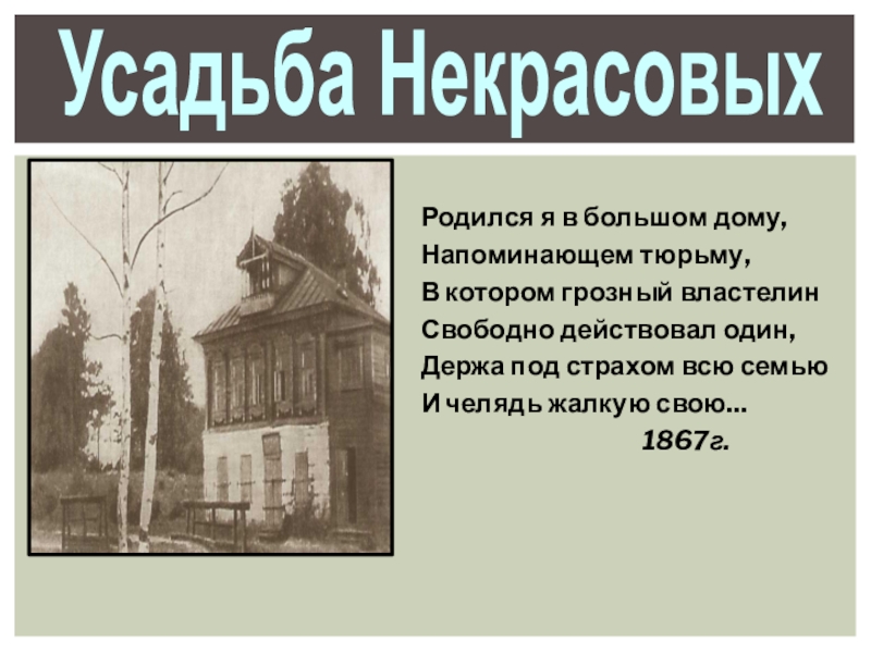 Детские годы Н.А.Некрасова прошли в родовом имении отца, в селе Грешневе Ярославской губернии.
