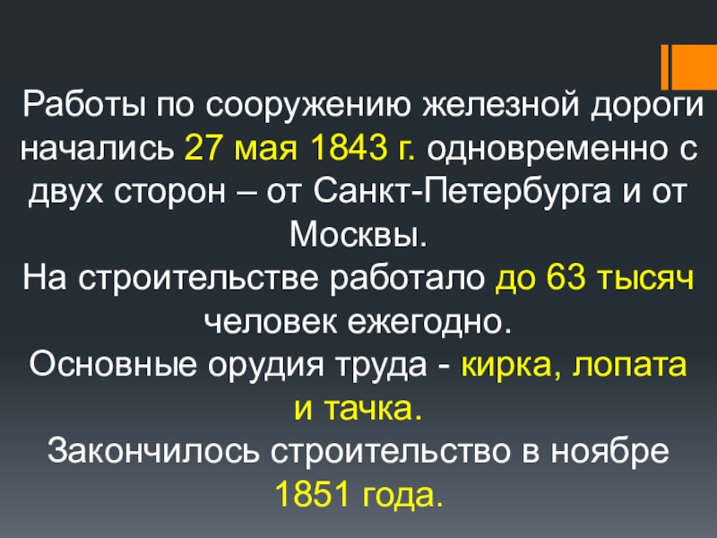 Слайд 38Работы по сооружению железной дороги начались 27 мая 1843 г. одновременно