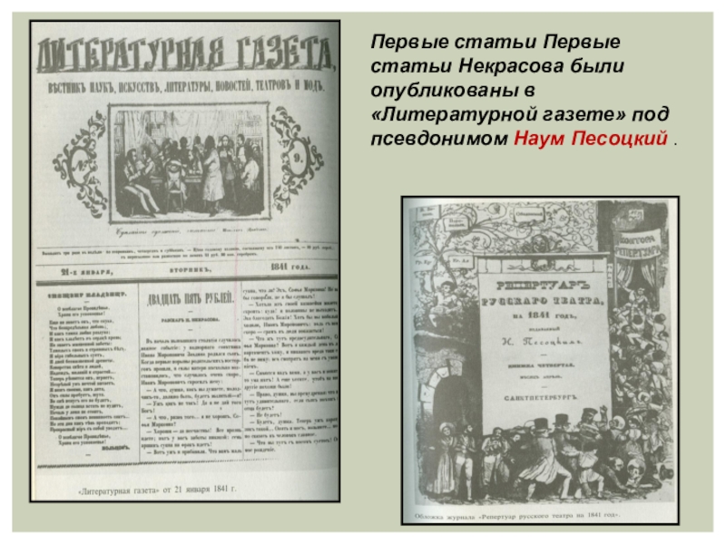 Слайд 15Первые статьи Первые статьи Некрасова были опубликованы в «Литературной газете» под