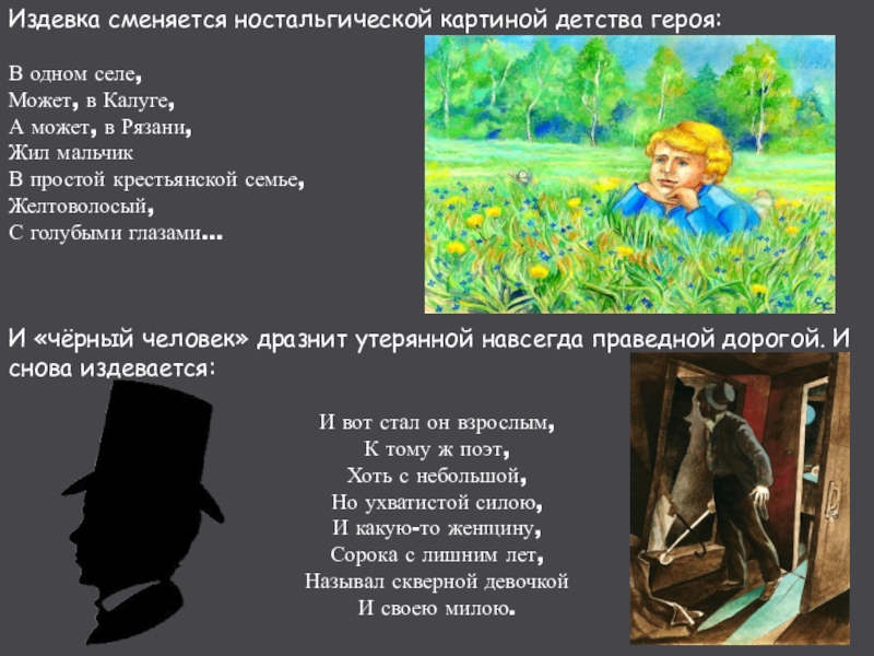 Слайд 20Издевка сменяется ностальгической картиной детства героя: