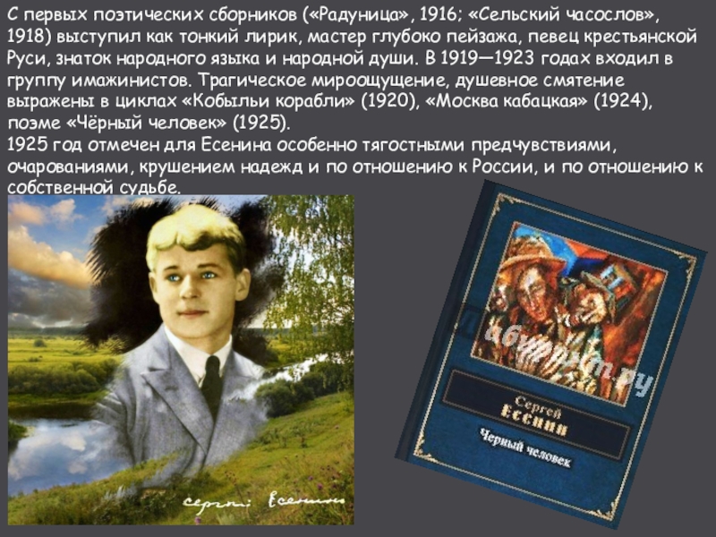 Слайд 6С первых поэтических сборников («Радуница», 1916; «Сельский часослов», 1918) выступил как