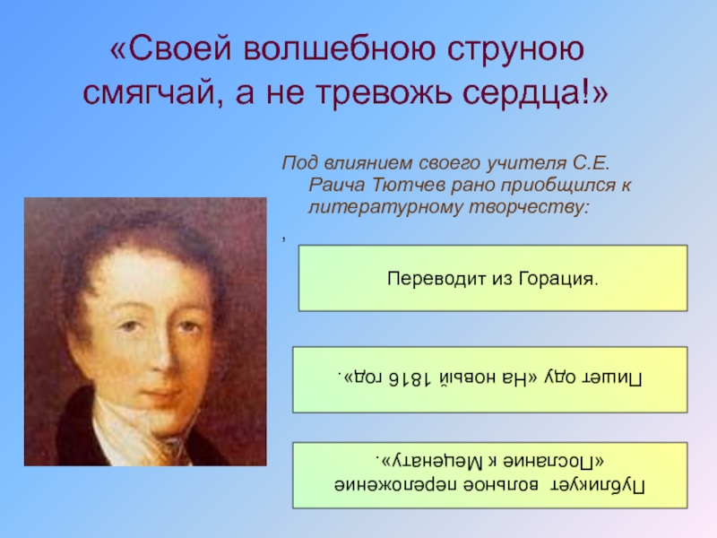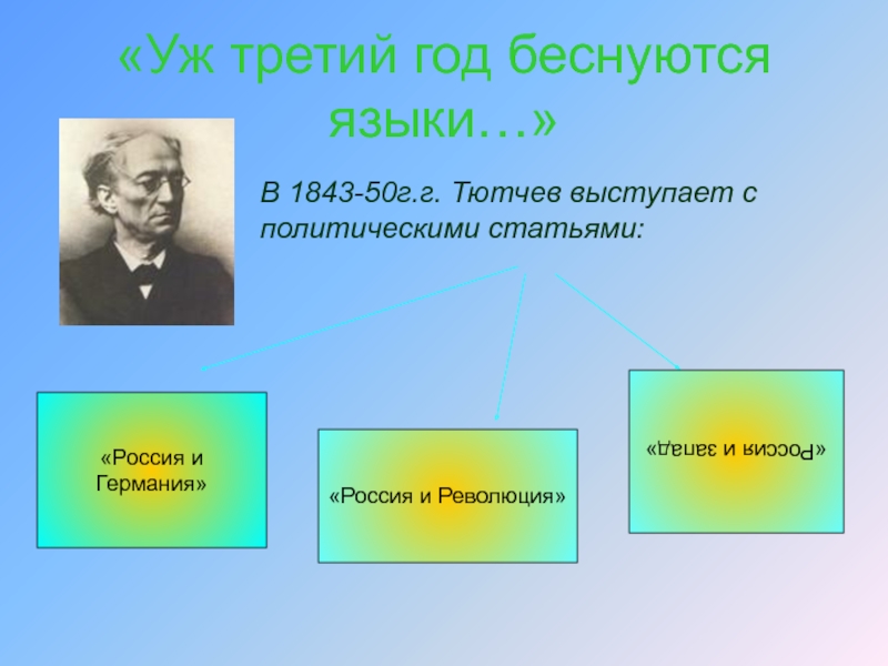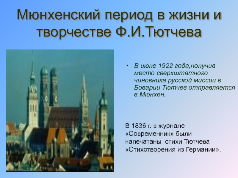 В 1836 г. в журнале «Современник» были напечатаны стихи Тютчева «Стихотворения из Германии».