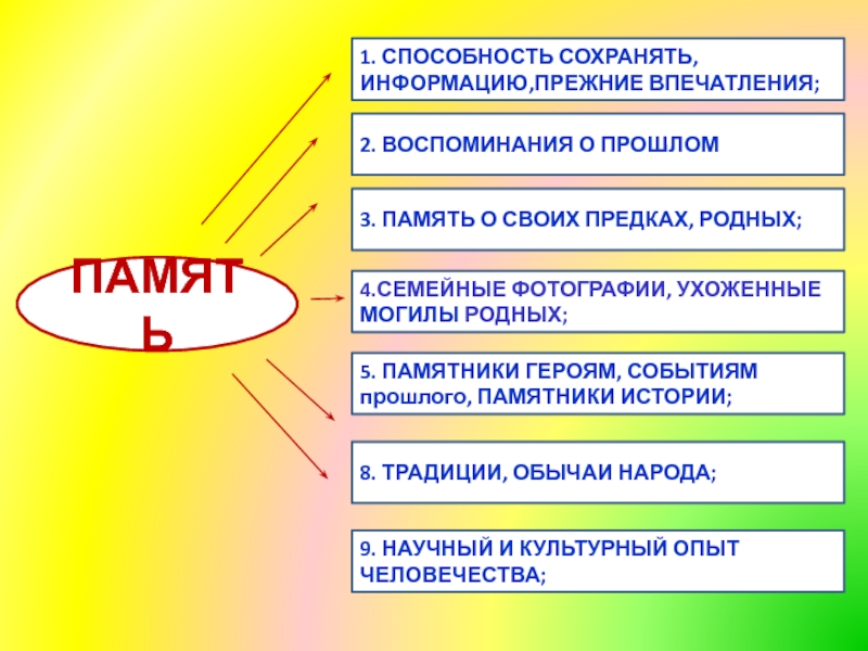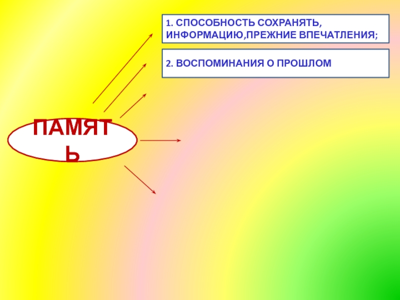 1. СПОСОБНОСТЬ СОХРАНЯТЬ, ИНФОРМАЦИЮ,ПРЕЖНИЕ ВПЕЧАТЛЕНИЯ;