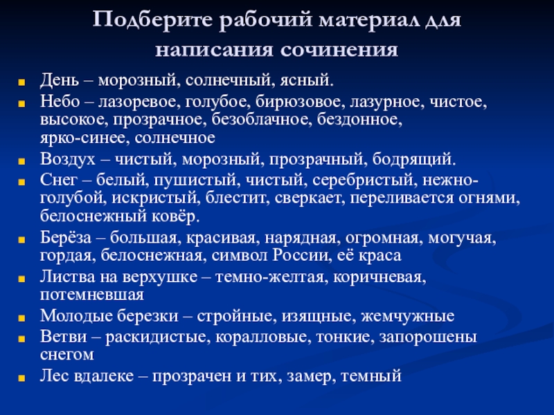 Слайд 15Подберите рабочий материал для написания сочинения